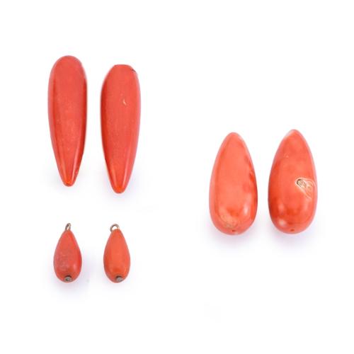 Lote seis con perillas de coral roja de 41,18 ct - 39,01 ct y 7,38 ct.