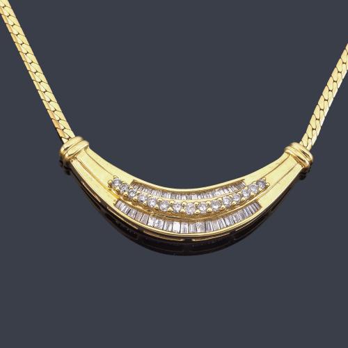 Collar con motivo central de media luna con diamantes talla brillante y baguette de aprox. 1,40 ct en total.