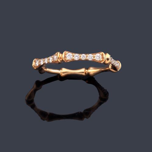Anillo con diseño bambú con cuatro bandas de brillantes de aprox. 0,30 ct en total.