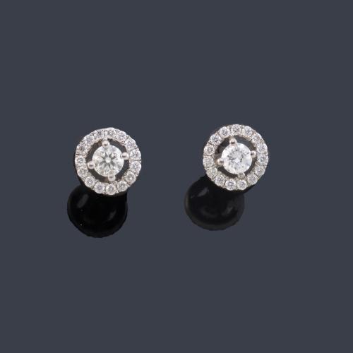 Dormilonas con brillante central y orla de diamantes de aprox. 0,54 ct en total.
