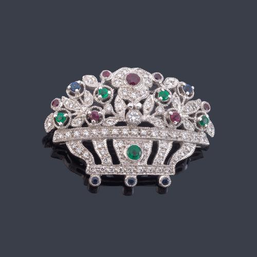 Broche con motivo de 'Bouquet floral' con esmeraldas, rubíes y brillantes.