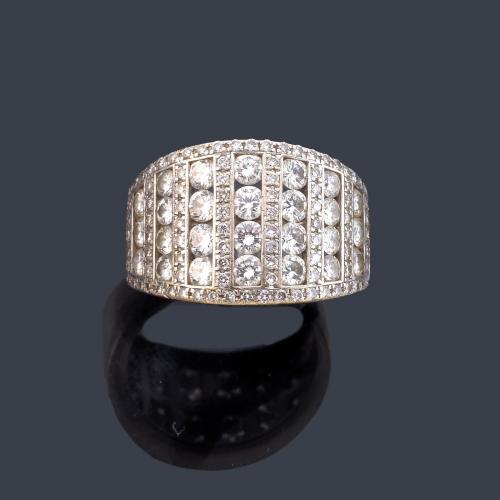 Anillo con siete bandas de brillantes de aprox. 2,00 ct en total en montura de oro blanco de 18K.