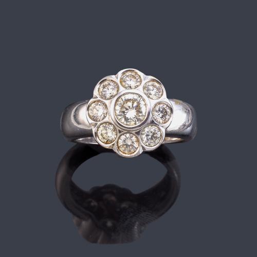 Anillo rosetón con brillantes de aprox. 1,80 ct en total.