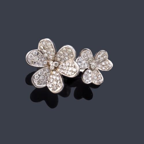 Anillo con doble motivo floral con pavé de brillantes de aprox. 1,65 ct en total.