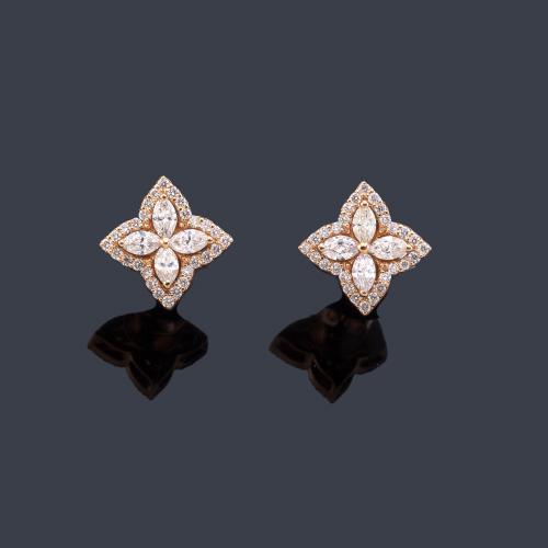 Pendientes cortos con motivo de floral cuajado de brillantes de aprox. 0,60 ct en total.