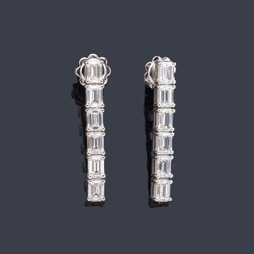 Lote 2432: Pendientes largos con diseño de tira de diamantes talla esmeralda con un peso total aprox. 3,78 ct.