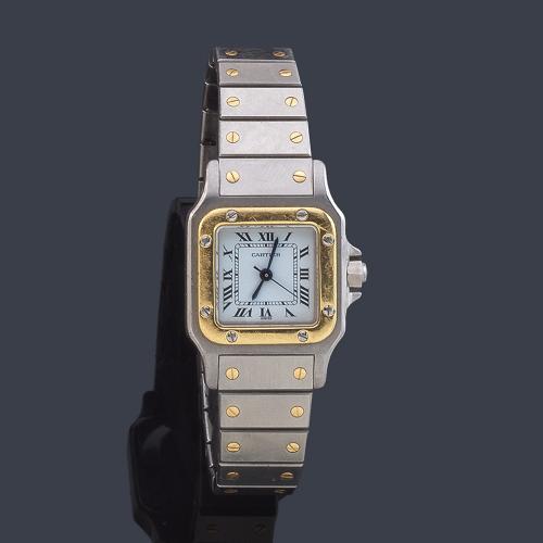 CARTIER Santos de señora con caja y brazalete en acero y oro de 18 K.
