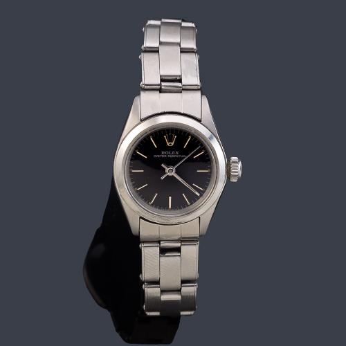 ROLEX Oyster Perpetual Date Ref. 6618. Reloj de señora con caja y brazalete en acero.