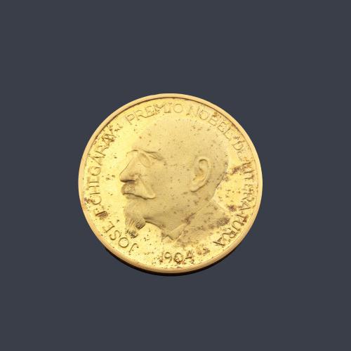 Moneda conmemorativa del Premio Nobel de Literatura José Echegaray 1904, en oro de 22K.