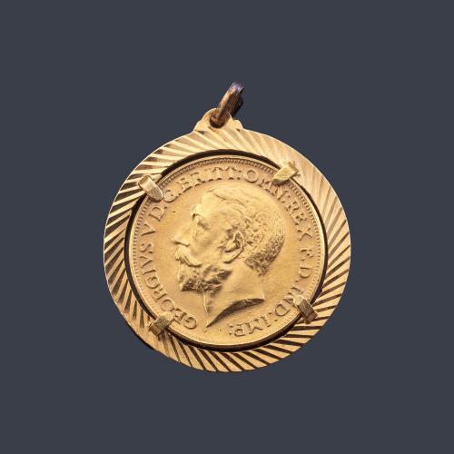 Colgante con moneda de Libra esterlina en oro 22K con soporte en oro amarillo de 18K.
