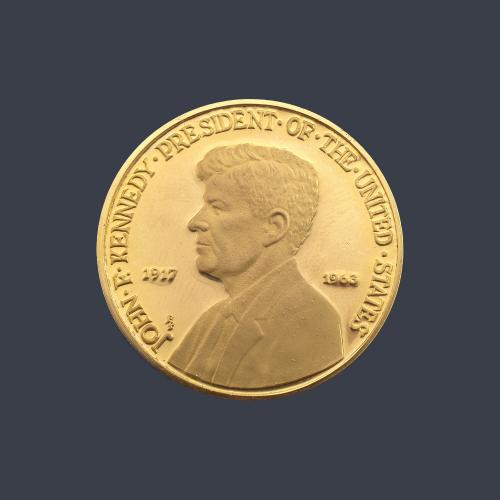 Moneda conmemorativa del Presidente de los EE.UU John F. Kenneddy en oro de 22K.