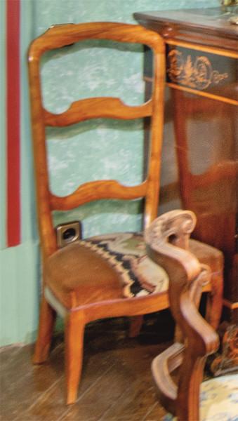 Lote 139: Silla baja con respaldo alto calado y recortado en madera de cerezo. Tapicería grospoint. Francia, finales del siglo XIX.