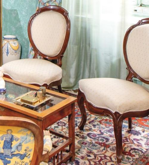 Lote 141: Pareja de sillas isabelinas en madera de caoba en madera tallada. Siglo XIX