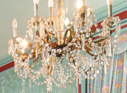 Lote 152: Lámpara de techo de 8 brazos con 2 luces con estructura de latón de hojas y flores. Con sartas y pandelocas de vidrio. Siglo XX.