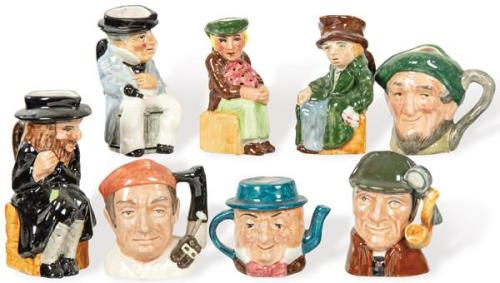 Lote 159: Conjunto de 8 jarras de cerveza en miniatura de porcelana. Con marca en la base de Artone. Inglaterra.