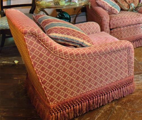 Lote 183: Pareja de sillones tapizados y con flecos. Siglo XX.