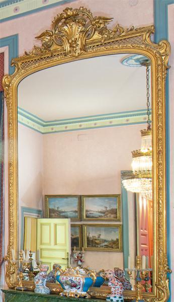 Marco de espejo isabelino en madera y decoración en escayola dorada con hojas de acanto. España, mediados del siglo XIX.