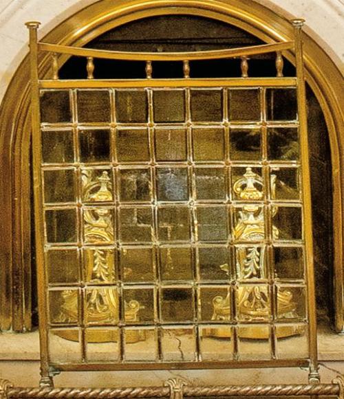 Pantalla de chimenea en bronce y cristal formando casetones h. 1910- 20.