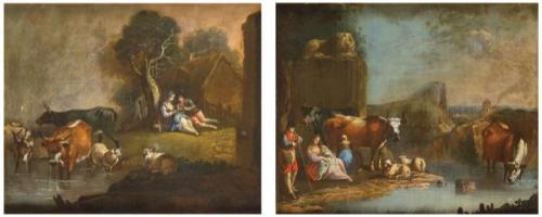 ESCUELA ITALIANA S. XVIII-XIX - Pareja de escenas campestres