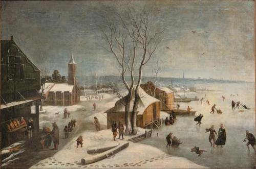 Paisaje invernal con patinadores. c. 1660