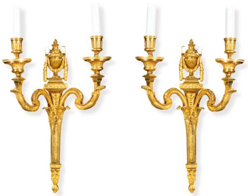 Pareja de apliques de bronce dorado estilo Luís XVI segunda mitad S. XIX