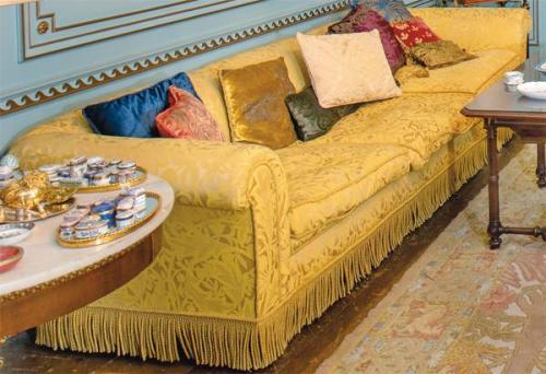 Lote 292: Sofá de 3 plazas tipo Chester en madera, tapizado adamascado en seda dorada. Siglo XX.