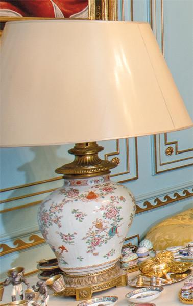 Lote 294: Pareja de lámparas de mesa de porcelana china con esmaltes policromos y montura de bronce. S.XIX