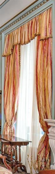 Lote 296-A: Dos parejas de cortinas a rayas rosas y beis
