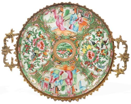 Lote 324: Centro de mesa de porcelana china de Cantón montado en bronce S. XIX