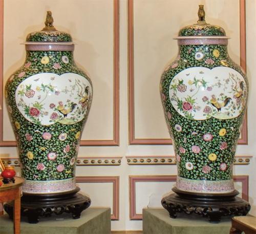 Lote 340: Pareja de grandes tibores de porcelana posiblemente de Samson. Francia S.XIX