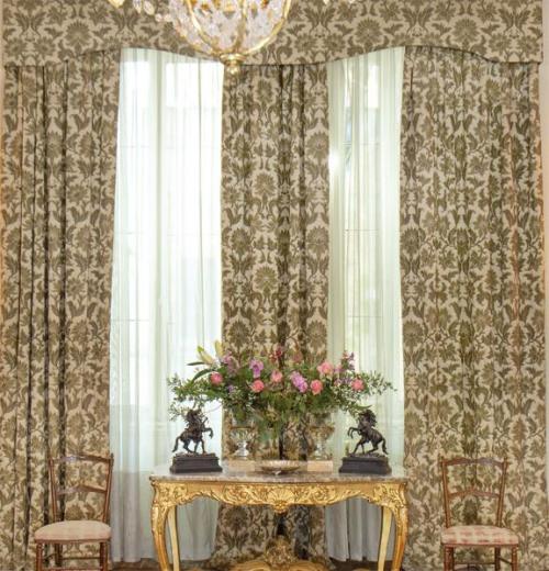Lote 345: Tres cortinas de flores sobre fondo beis