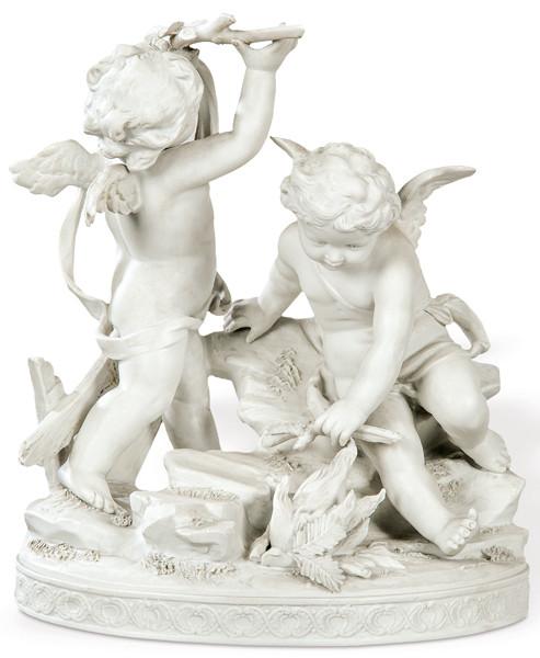 Grupo escultórico de putti jugando en porcelana de biscuit