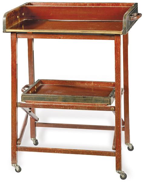 Lote 430: Mesa auxiliar en madera de haya teñida y cuero verde gofrado y dorado. Siglo XX.
