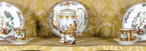 Lote 432: Juego de café en porcelana "Viejo París" con 4 hueveras con roturas.