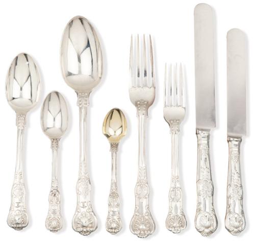 Lote 438: Cubertería victoriana de plata inglesa punzonada Ley Sterling de Joseph & Albert Savory, Londres 1840-1841.