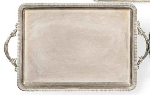 Bandeja rectangular de dos asas de plata española punzonada 1ª Ley de Pasgorcy