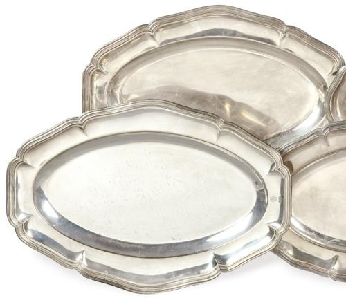 Pareja de bandejas de servir de borde ondulado de metal plateado inglés pp. S. XX