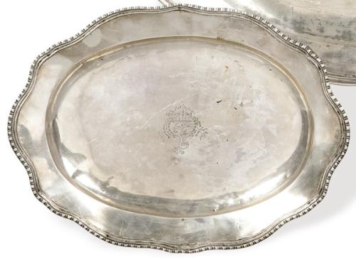 Lote 494: Bandeja oval posiblemente de plata con borde ondulado con estrías cincelado