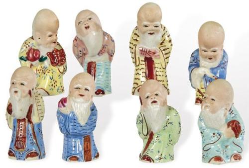 Lote 513: 8 sabios taoistas en porcelana policromada