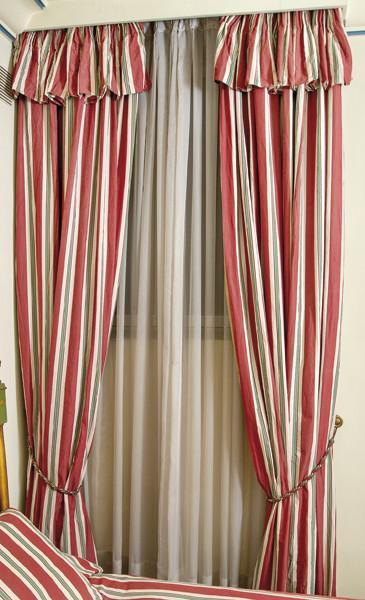 Dos parejas de cortinas de rayas rojas