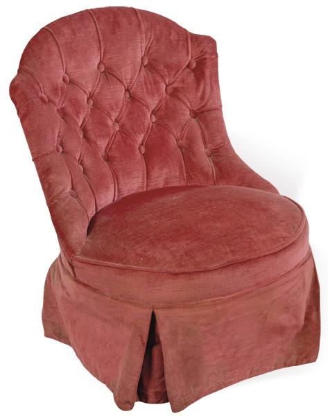 Lote 547: Butaca con respaldo en capitoné y tapizado en tela de chenilla rosa