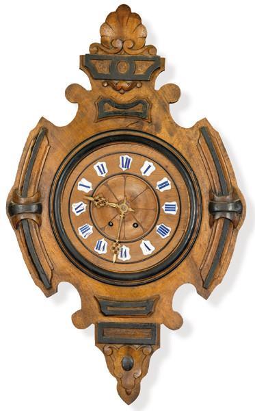 Lote 553: Reloj de pared alfonsino en amdera de nogal y madera ebonizada