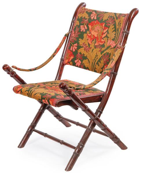 Lote 554: Silla pleglabe en madera de castaño torneado y teñido.