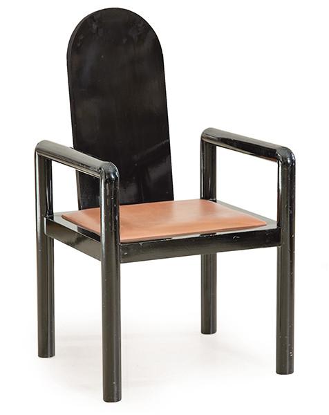 Lote 1297: Silla con brazos en madera lacada en negro y asiento tapizado.