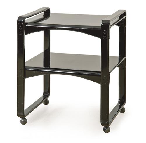 Carro camarera en metal y madera lacada en negro, con bandeja extraible en pa parte superior.