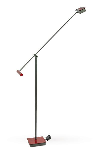 Lámpara de pie Stilnovo con foco orientable, en metal lacado en negro y rojo. S. XX