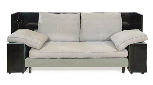 Sofá modelo Lota, creado en 1923. En madera pintada, metal cromado y tela.