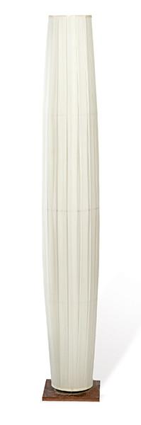 Lámpara de pie Colonne H162, en forma de columna en tejido multicapa plisado beige sobre base cuadrada en acero inoxidable cepillado.