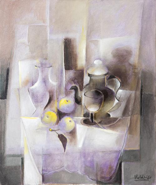 Lote 510: ANTONIO VALDIVIESO - Naturaleza muerta con manzanas y tetera