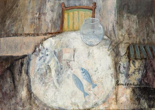 Lote 512: JOSÉ LUIS LOPEZ ROMERAL - Naturaleza muerta con peces